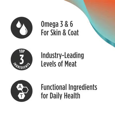 Salmón, caldo de salmón, caldo de pavo, pavo, hígado de pavo, sabor natural, zanahorias, producto de huevo deshidratado, guisantes molidos deshidratados, corazones de pavo, goma guar, linaza molida, fosfato de sodio, sal, grasa de pollo, cloruro de potasio, taurina, calabaza, arándanos rojos, arándanos azules, cloruro de colina, algas marinas deshidratadas, extracto de Yucca schidigera, inulina, proteinato de hierro, proteinato de zinc, mononitrato de tiamina, suplemento de vitamina E, proteinato de cobre, proteinato de manganeso, selenito de sodio, suplemento de niacina, pantotenato de calcio, clorhidrato de piridoxina, suplemento de riboflavina, suplemento de vitamina A, biotina, yoduro de potasio, suplemento de vitamina D3, suplemento de vitamina B12 y ácido fólico.