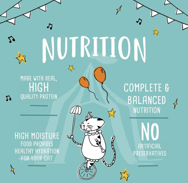 Alimenta según la edad, tamaño y nivel de actividad de tu gato. Servir a temperatura ambiente y refrigerar la porción no utilizada. Asegúrate de que tu gato siempre tenga abundante agua fresca disponible. Estas recomendaciones son solo una guía y deben ajustarse de acuerdo con la salud, condición corporal, etapa de vida, sexo, nivel de actividad y temperatura del entorno de tu gato.