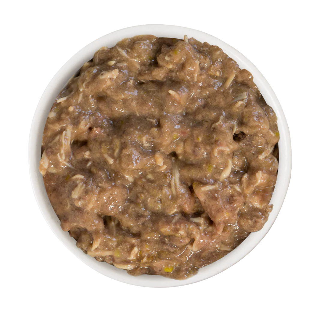 Con pollito sin hueso, criado libre (cage-free), y trocitos de pumpkin en un caldito au jus súper deli, esta receta tiene high protein, cero carbs, sin almidones y está hecha para alimentar los cravings de tu michi