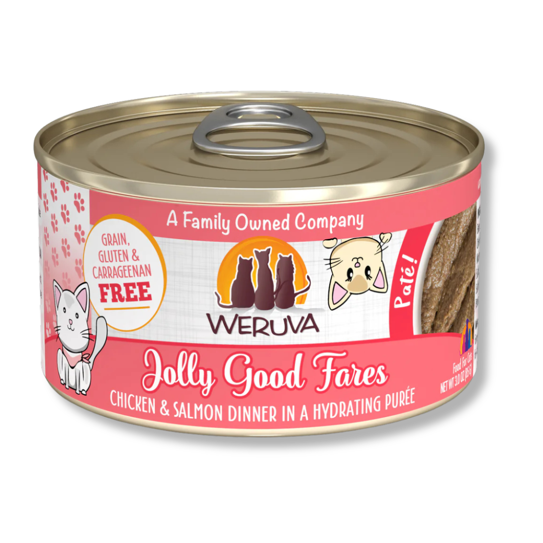 El Weruva Classic Cat Jolly Good Fares combina pollo y salmón en un paté suave y cremoso, irresistible para los gatos más exigentes. Cada lata está hecha con ingredientes simples y naturales que podés ver, sin granos, gluten, carragenina, MSG, ni sabores o colores artificiales.